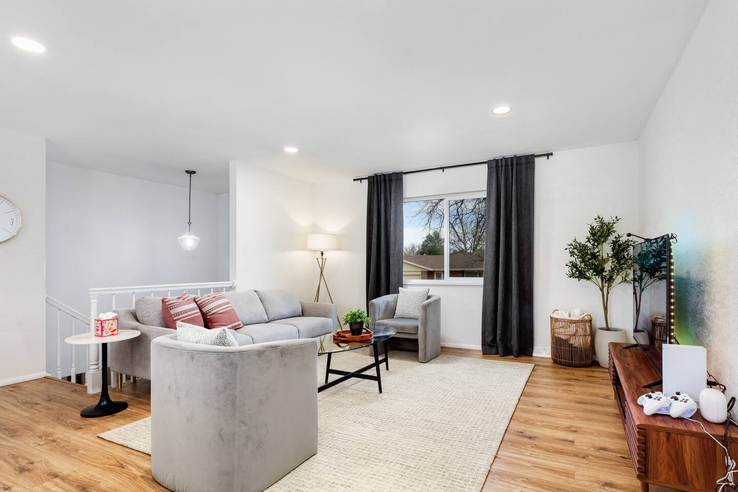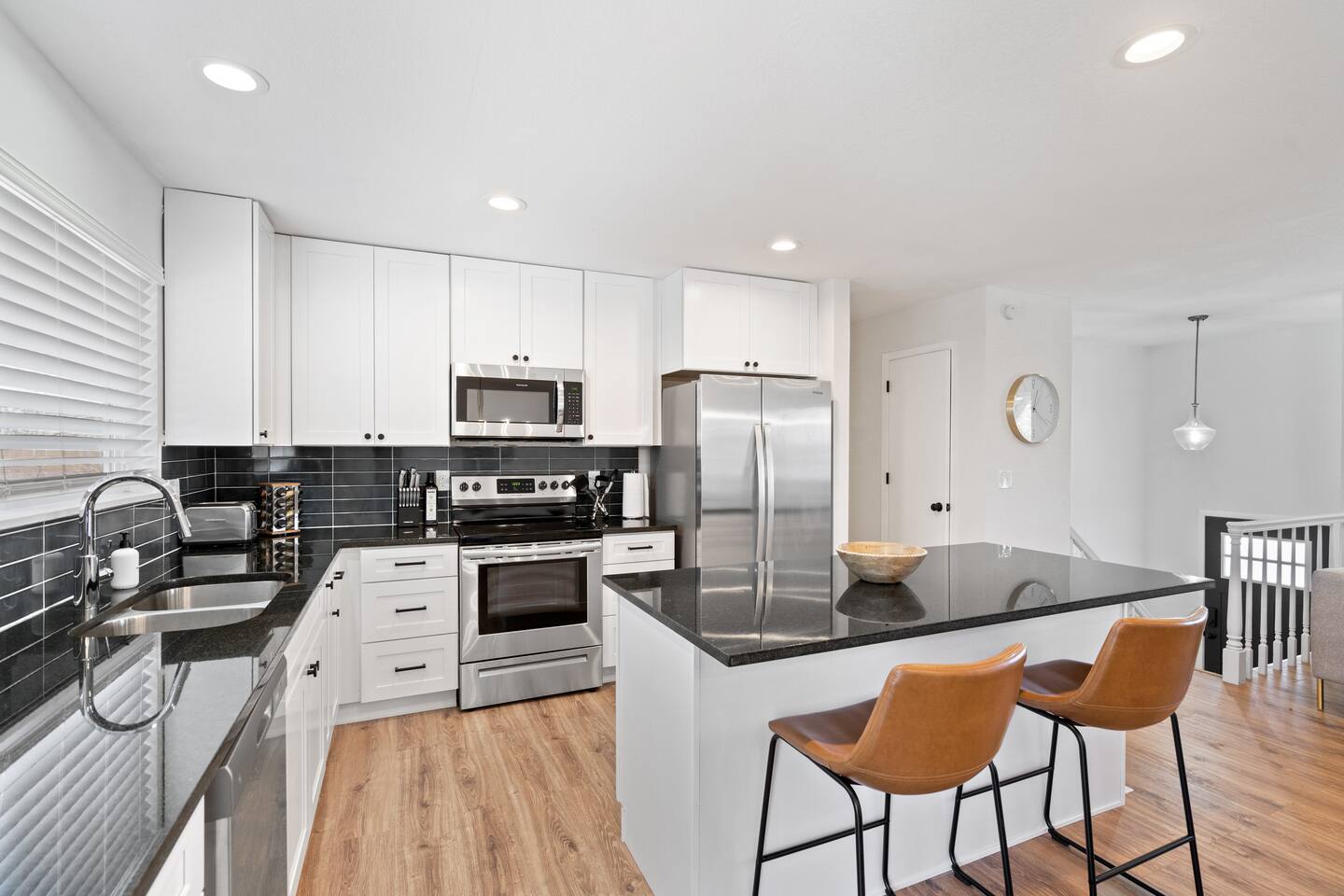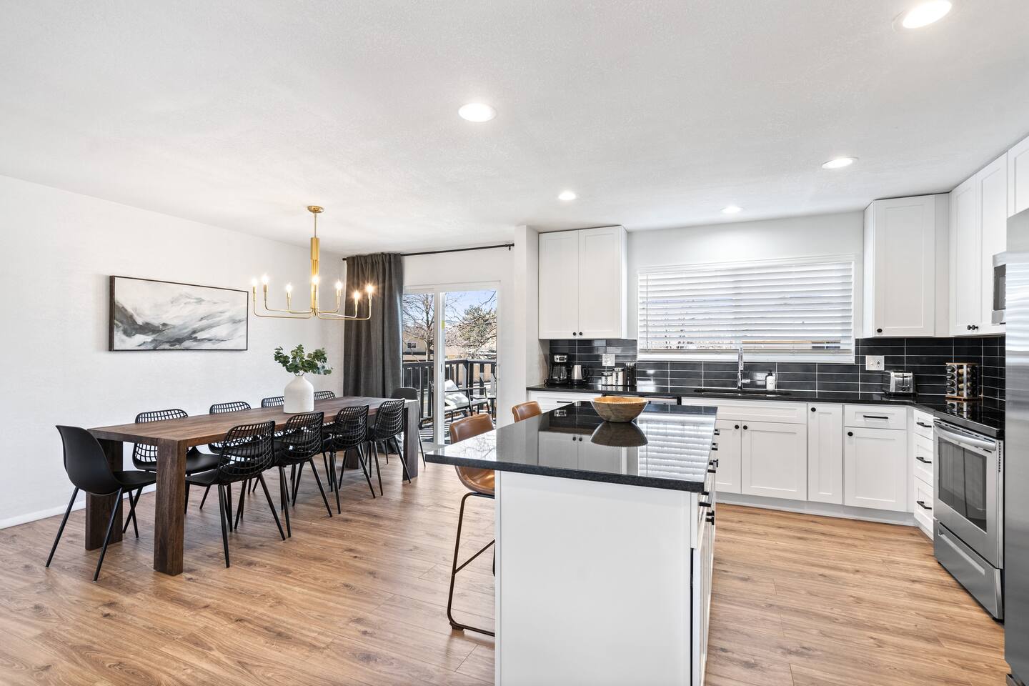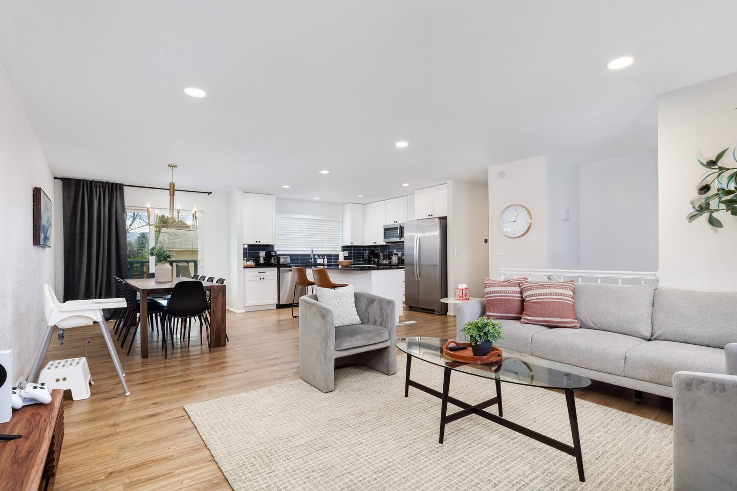 ♦♦♦ HIGHLIGHTS - NEWLY RENOVATED WITH TOP-LINE AMENITIES ♦♦♦ ➤ Spacious - 2500 Sq ft, 5-bedroom 3-bathroom, house with 2 KING beds, 3 QUEEN beds and 2 comfortable couches. ➤ Every bedroom is equipped with memory foam mattress, hotel-standard bedding (We changed to using ALL WHITE BED Linen, although the photos have not been updated to reflect this change.) and blackout curtain for maximum comfort ➤ The CB2 dining table comfortably seats 10 people ➤ Private and peaceful backyard with outdoor dining set, fire pit, lounge chairs, patio furniture set, etc ➤ Plenty of entertainment (Xbox with Ultimate Game Pass, Netflix, Disney+ and ESPN+, pool table, board games) ➤ Sanitized, self-check-in (check yourself in with the Smart lock anytime after checkin time, contact-free) ➤ High speed Wi-Fi (600+mbps with strong coverage! Blazing fast!) ➤ Living rooms are equipped with 60-inch Smart TV, and each bedroom has its own TV ➤ Chef's kitchen with top-line cookware and utensils (see photos) ➤ LG washer/dryer free to use; Laundry detergent, iron and iron board provided ♦ GREAT LOCATION • Close to Arvada main area with ample dining, shopping & entertainment • 5-10 Min to Sprouts, Target, Walmart • 15 Min to RED ROCKS Park and Amphitheatre • 15 Min to Olde Town Arvada, Downtown Golden • 15-20 Min to Denver downtown • 24 Min to Coors Field • 25 Min to Boulder • 30 Min to Denver International Airport ♦ FULL KITCHEN • Coffee maker, mugs & cups • Blender, frying pans, rice cooker, saucepan & baking sets • Cutting board, knives, salt, sugar, olive oil and spices • Many other utensils (see photos) ♦ PLENTY OF ENTERTAINMENT • Both living rooms are equipped with a 60-inch Smart TV featuring Netflix, Disney+ and ESPN+, and each bedroom has its own TV • Xbox with Ultimate Game Pass • Pool table • Board games for adults and kids ♦ CHILD FRIENDLY • Travel crib (Pack n Play) • High chair • Kids dinnerware sets • Step stool ♦ REMOTE WORKING FRIENDLY • Fast wifi at 600+ Mbps, plus desks and chairs ♦♦♦ LONGER STAY, LARGER DISCOUNT! ♦♦♦